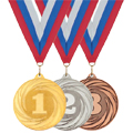 Медаль бронзовая, серебряная и золотая - стандартный комплект медалей.